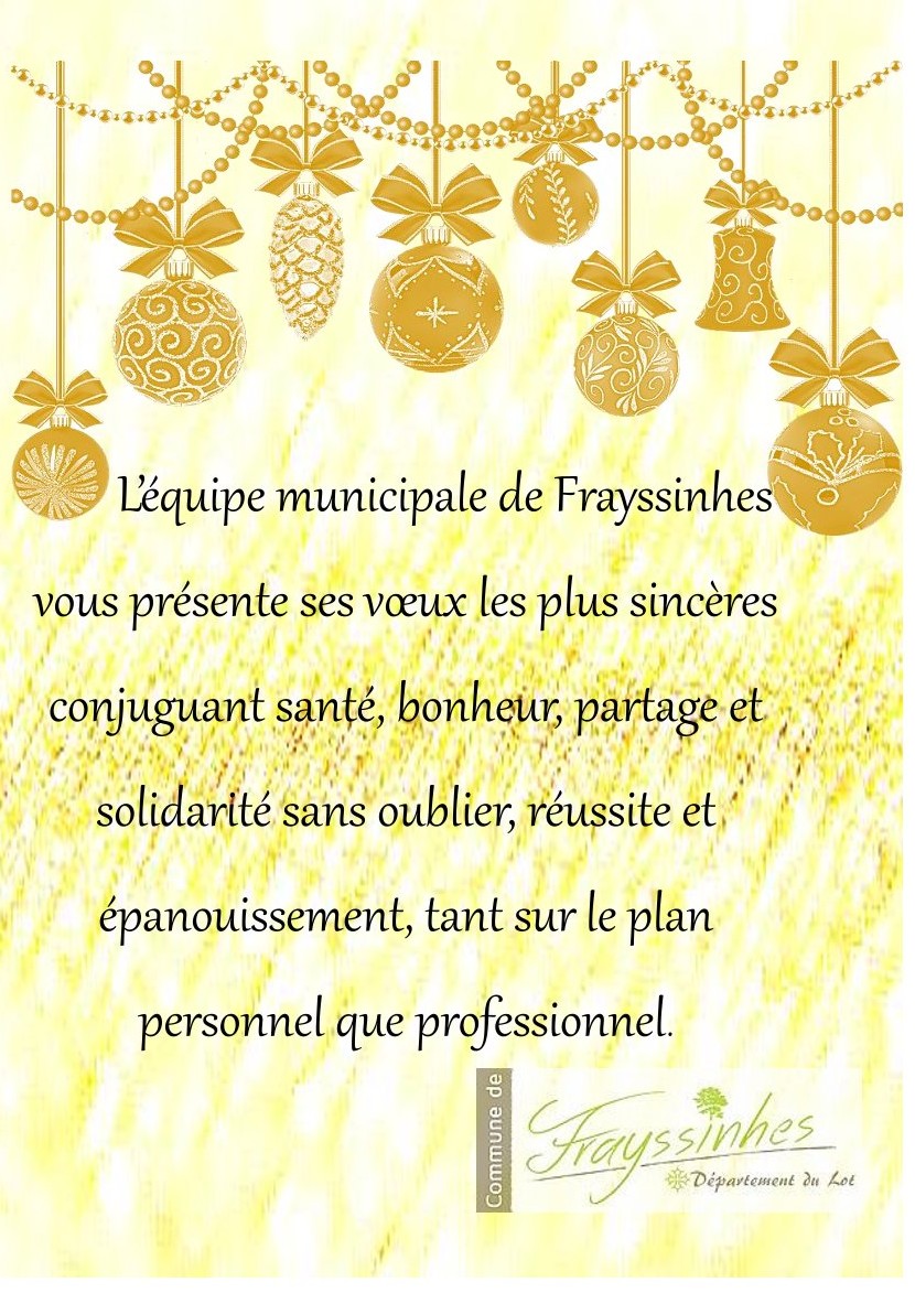 A l'occasion des voeux de la Maire les habitants pourront aprécier à un spectacle musical "Voix en scène" et partager la traditionnelle galette confectionnée et offerte par l'association Vivre à Frayssinhes